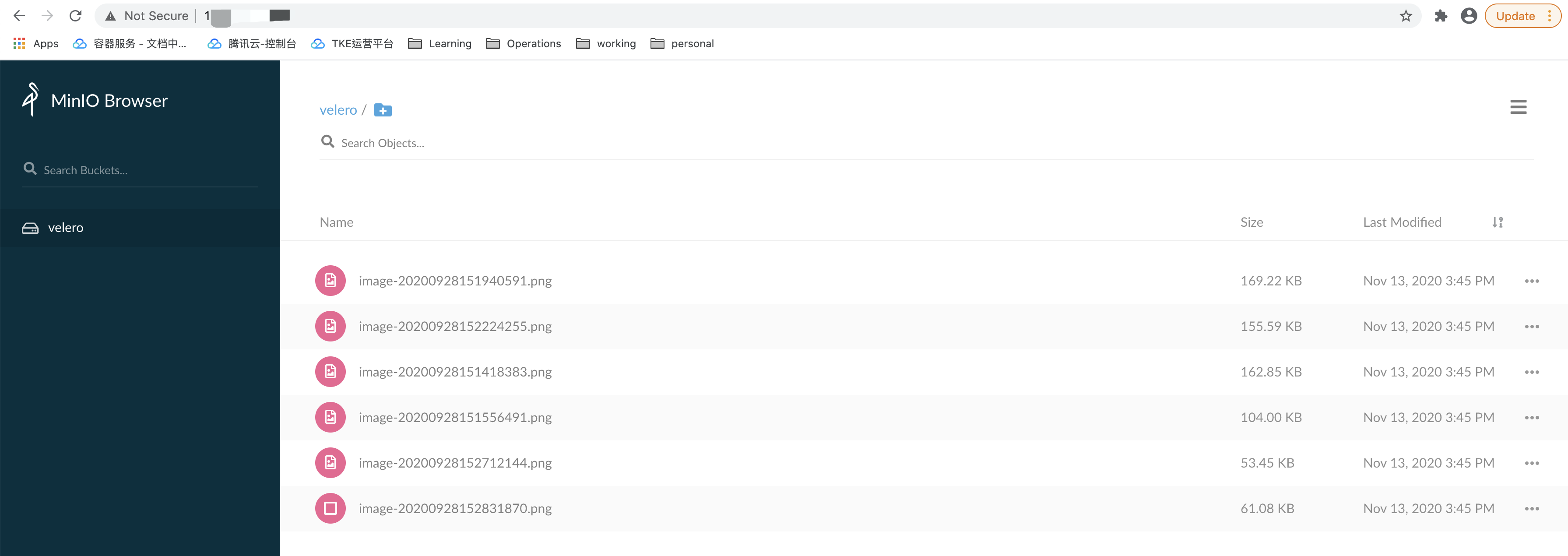 Log in to minio’s management page on your browser and you can see that the previously uploaded picture data is still there, indicating that the persistent volume’s data was successfully restored, as shown below: