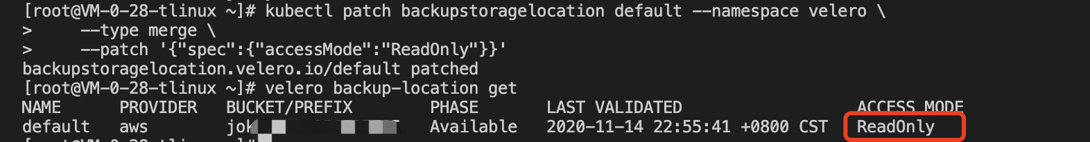 When the restore is complete, don’t forget to restore the backup storage location to read and write mode so that the next backup task can be used successfully: